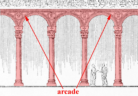 • A series of arches, an archway, or arches with upright elements (columns or piers).