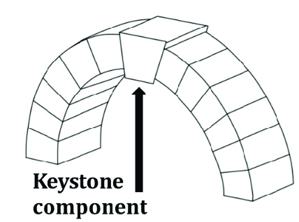 • Upper stone in an stone arch that connects the ribs meeting at the top of a vault.